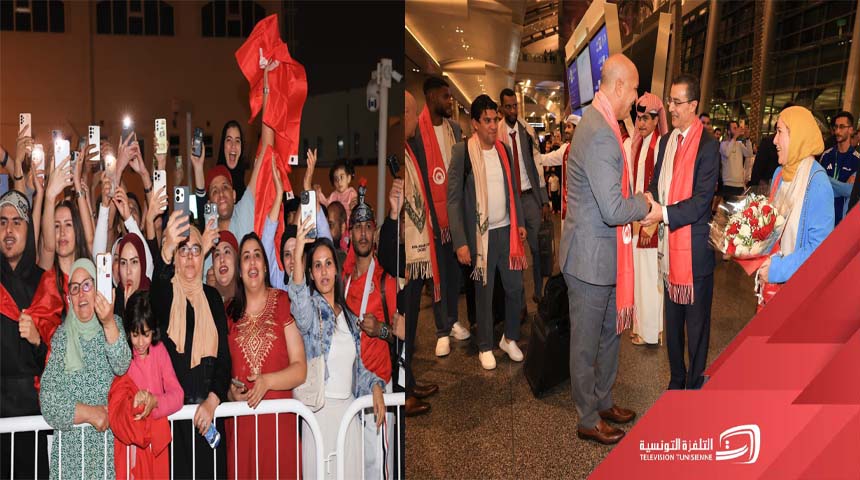 وصلت بعثة المنتخب الوطني التونسي لكرة القدم إلى العاصمة القطرية الدوحة استعدادًا لخوض نهائيات كأس العرب 2025، التي تقام من 1 الى 18 ديسمبر 2025 بمشاركة 16 منتخبا حيث كان في استقبال البعثة سفير تونس بقطر فرهد خليف،كما كانت الجماهير التونسية في الموعد لاستقبال العناصر الوطنية.